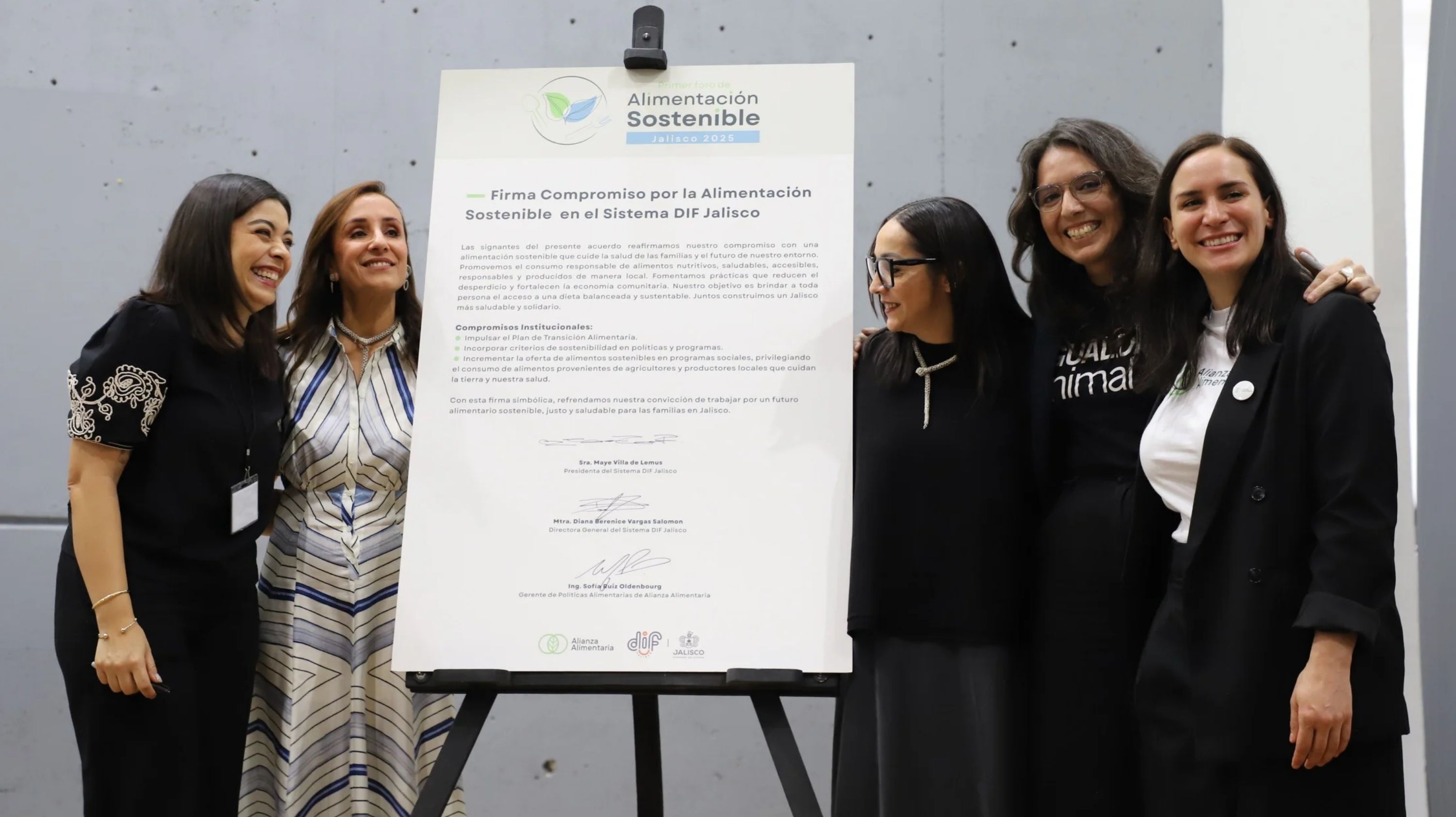 Durante el Foro las organizadoras firmaron el Compromiso por la Alimentación Sostenible en el DIF Jalisco, con el que impulsarán un plan de transición alimentaria, la incorporación de sostenibilidad a las políticas y el incremento de oferta de alimentación sostenible en los programas sociales, privilegiando el consumo de alimentos locales.
